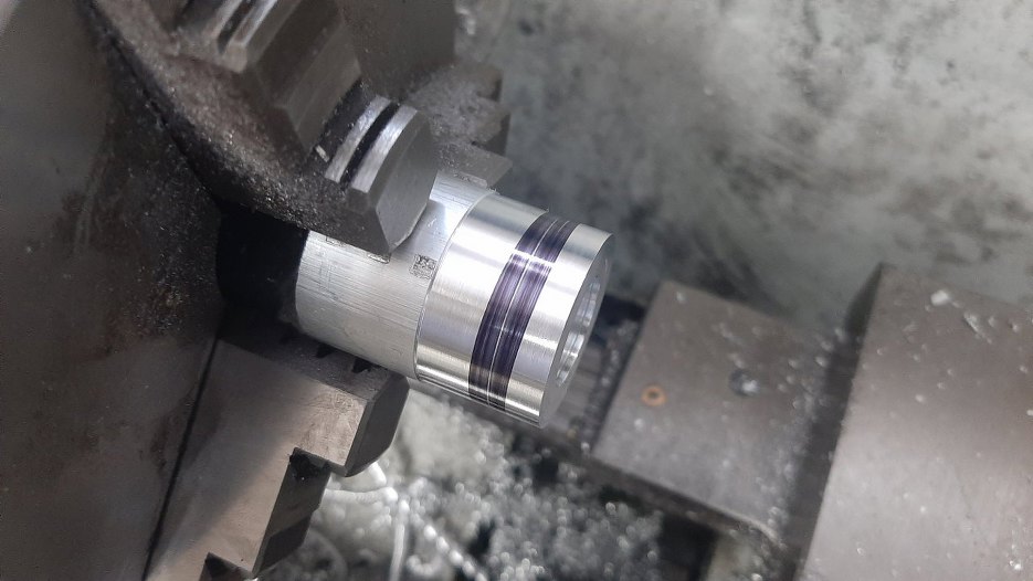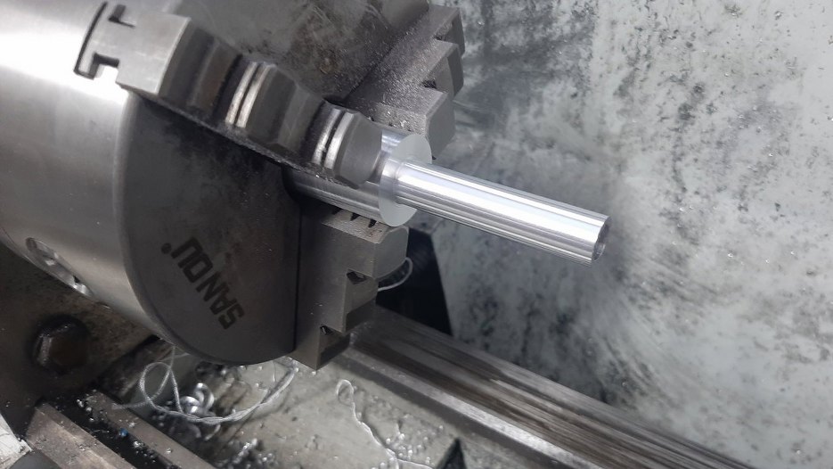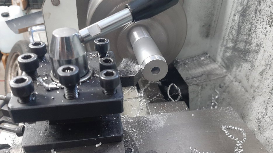 I zaczynam toczenie. Może nie umiem, ale lubię :). Najpierw otwór 8mm w środku elementu.
