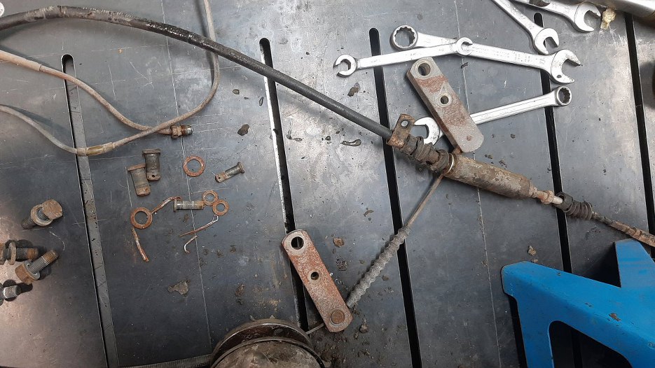 Odpiąłem linkę hamulcową i zdjąłem ją z mocowań.