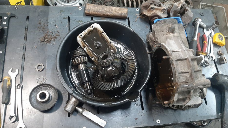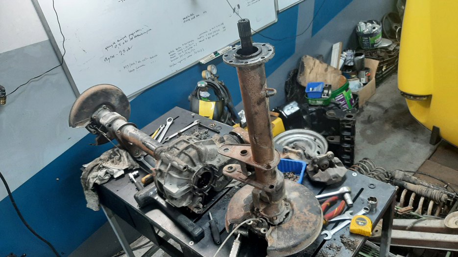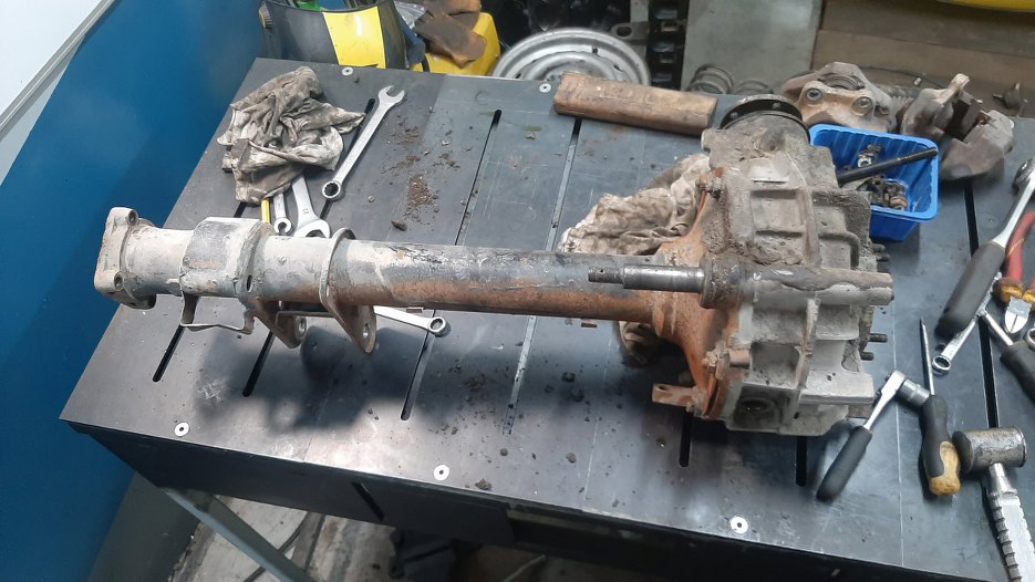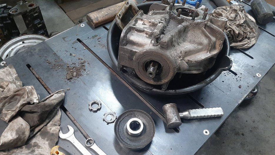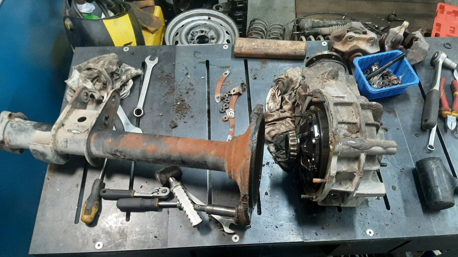 Muszę jeszcze zrobić coś z tylnym mostem. Nie ma szans, żebym go porządnie doczyścił bez rozkładania. Poza tym chcę od razu wymienić w nim uszczelniacze. Rozkładam zatem.