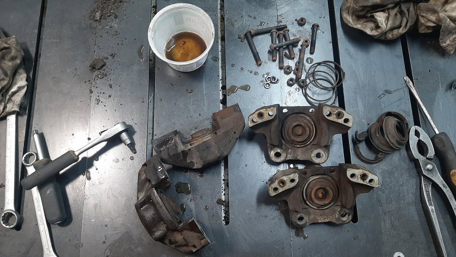 Z zacisków wyjąłem klocki hamulcowe.