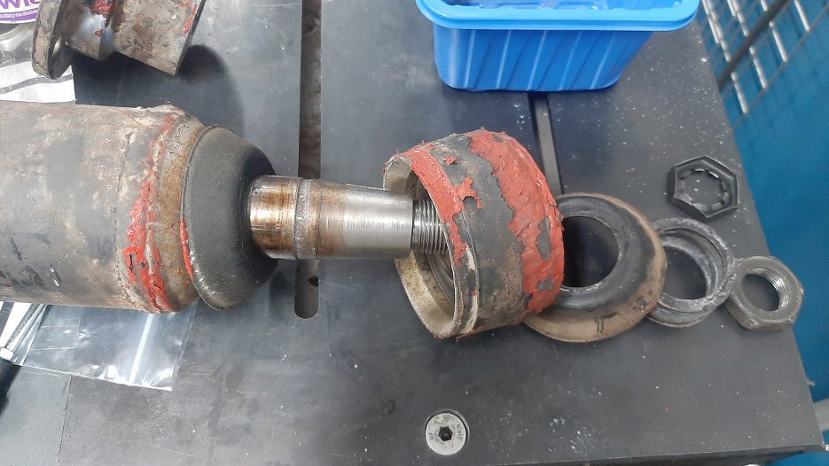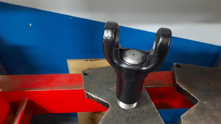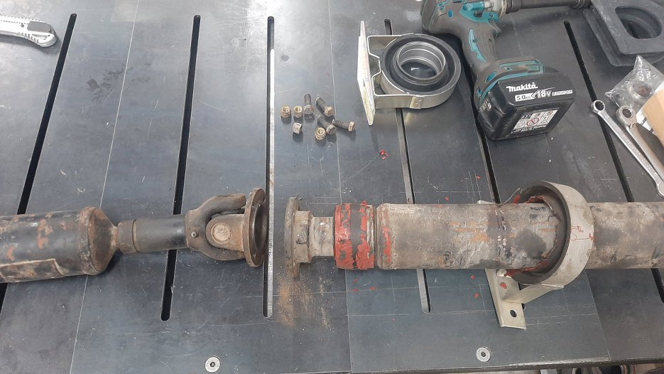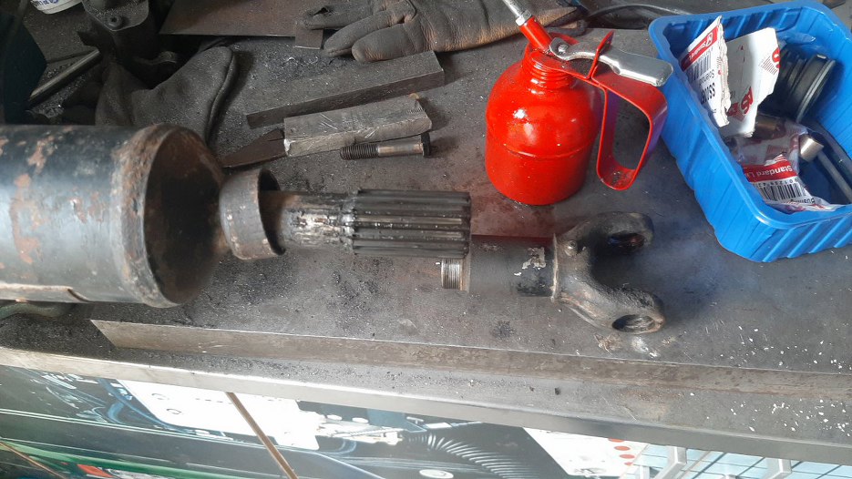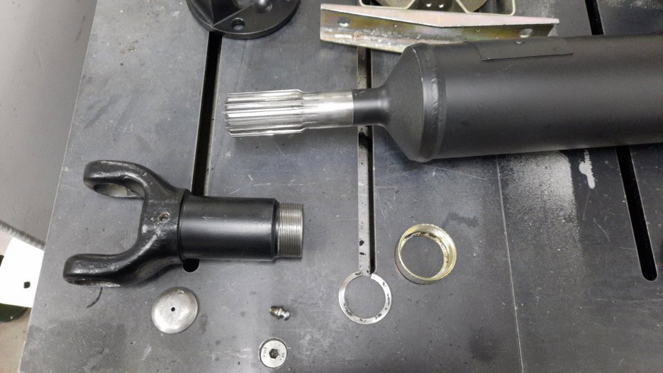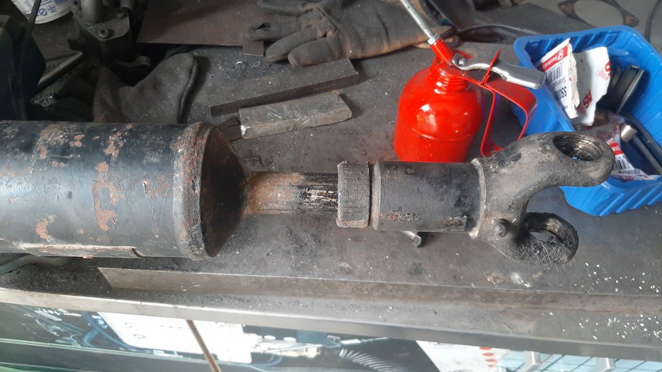 Na końcu wału, od strony mostu, jest część przesuwna. Most, ruszając się góra-dół, w zależności od pracy zawieszenia, zmienia swoją odległość od skrzyni. Ta część bierze tą zmianę długości na siebie. Muszę ją zdemontować.