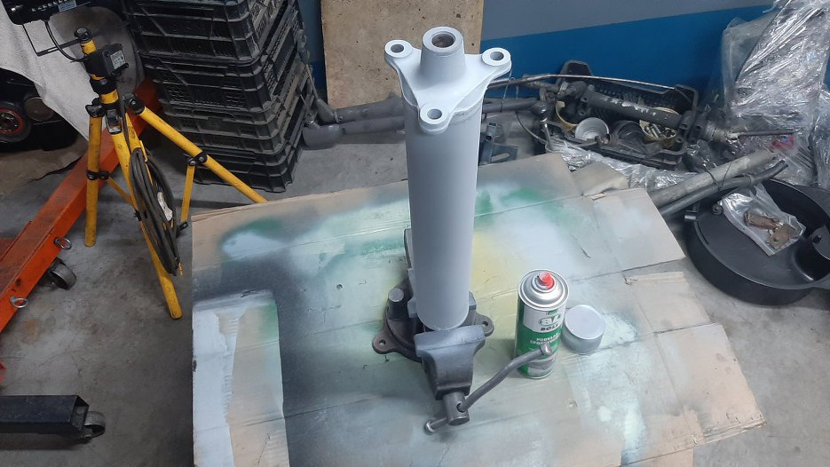 Na szczęście tak się zupełnie przypadkowo złożyło, że wysłałem wcześniej właścicielowi listę zakupów części do silnika i skrzyni biegów, na której (zupełnym przypadkiem przypominam) była również podpora wału. Zupełnm przypadkiem Sebastian ją kupił i równie wielkim przypadkiem ją dostałem razem z resztą części. Mogę ją teraz (już nieprzypadkowo) zamontować.