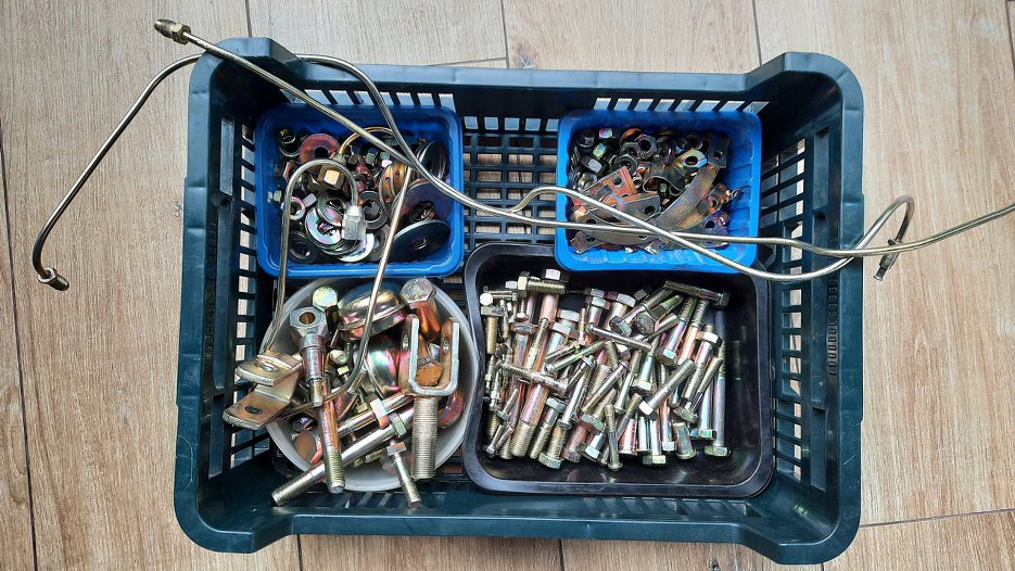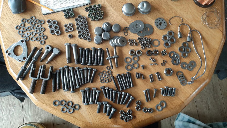 Przejdźmy teraz do przedniego zawieszenia. Najpierw wszystkie śrubki (i takie tam) zostały oczyszczone do gołej stali.