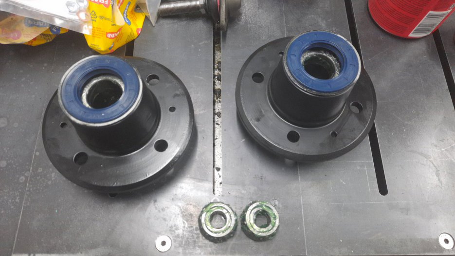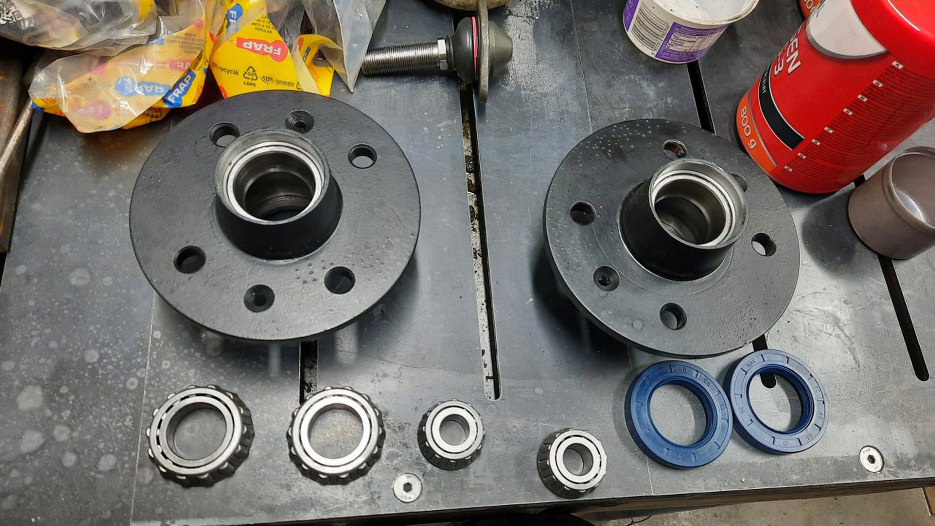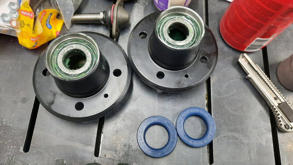 Piasty oczyściłem sam, szczotką drucianą na szlifierce kątowej. Po dokładnym myciu pomalowałem je. Łożyska są stare, bo są dobre. Umyłem je dokładnie ze starego smaru. Kupiłem nowe simmeringi.