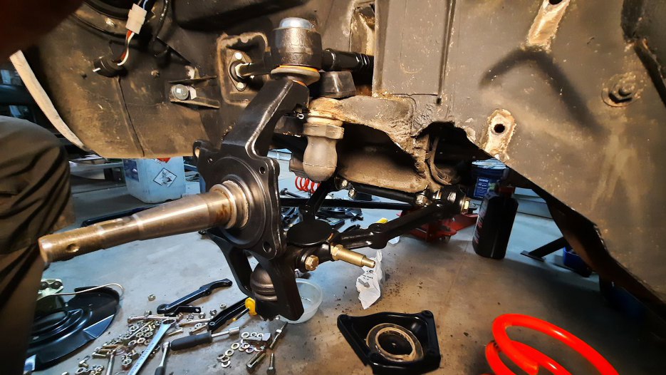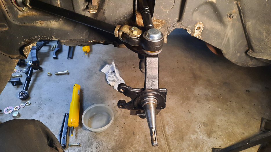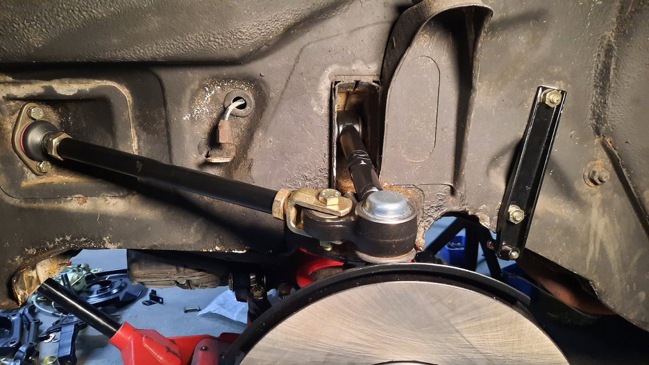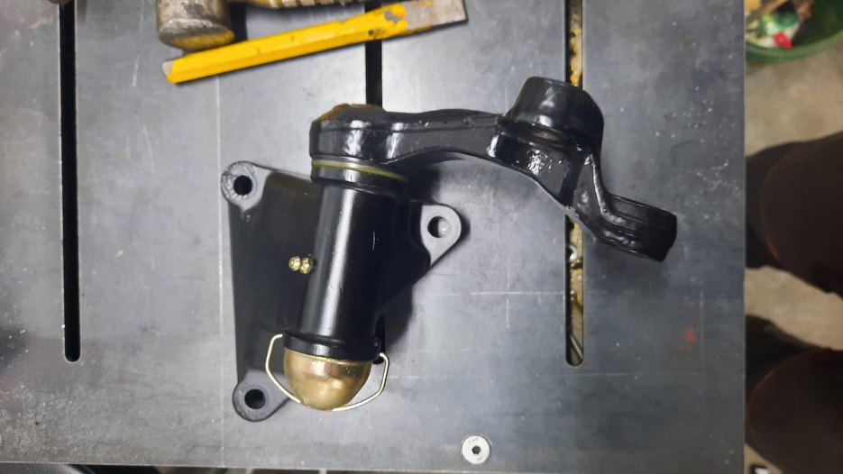 Przykręciłem dolny sworzeń. Zwrotnica już na miejscu.