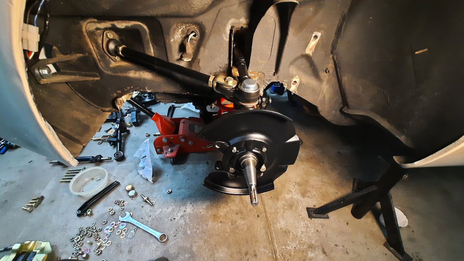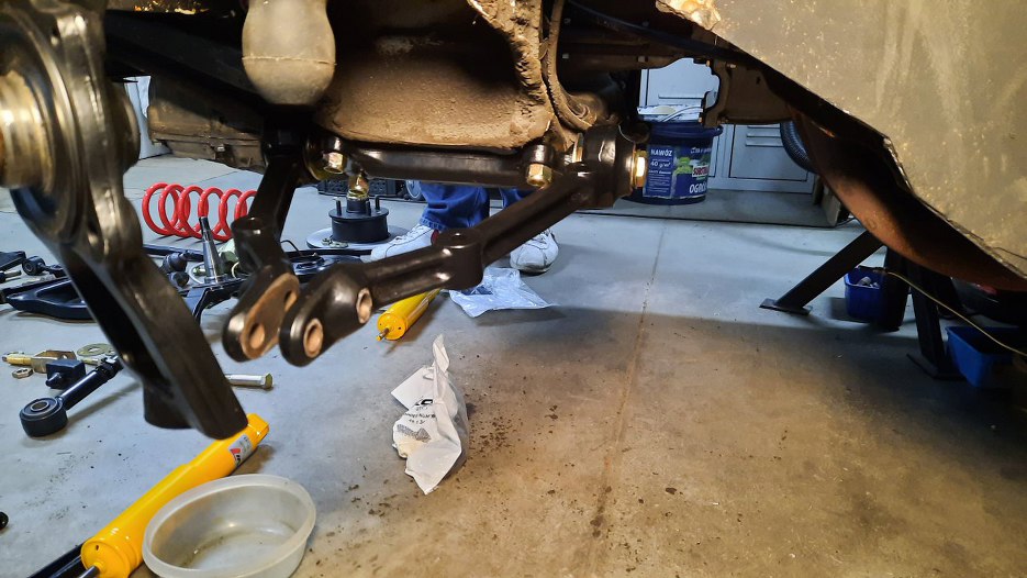 Skręciłem drążki reakcyjne. Właściwie to najpierw zrobiłem lewą stronę, więc robiłem wszystko po kolei, a nie symetrycznie po obu stronach.