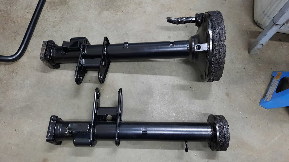 Obudowy półosi też były malowane proszkowo. Ale jak by ich nie zabezpieczać, zawsze do środka dostanie się trochę śrutu - piaskowanie jest pod takim ciśnieniem, że nie ma żadnych szans na uniknięcie tego. Można to najwyżej próbować zminimalizować tymi zabezpieczeniami. Kluczowe jest też dokłądne umycie takich części w środku, żeby, jak już śrut się tam dostanie, łatwo było je doczyścić.