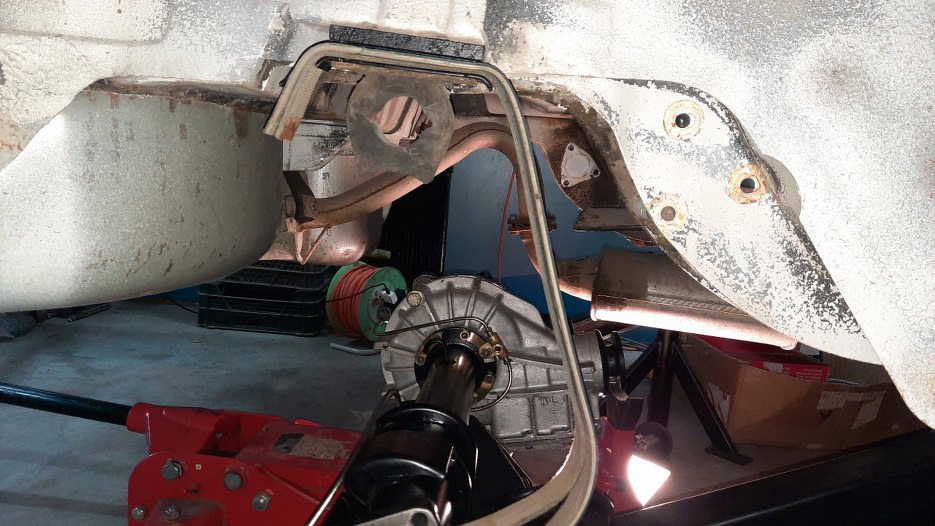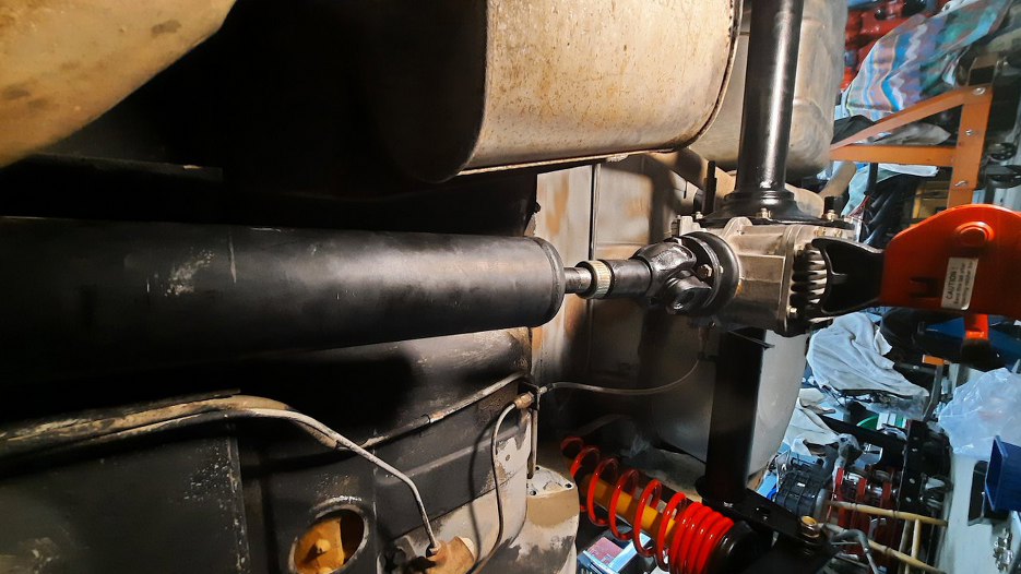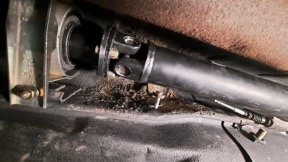 Jak już tak się wylegiwałem pod samochodem, to było tak miło, że z rozpędu przykręciłem też drugą część wału napędowego - od łożyska podpory...
