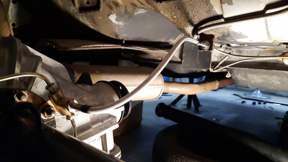 Przy okazji przykręciłem też nowy elastyczny przewód hamulcowy między mostem a nadwoziem.