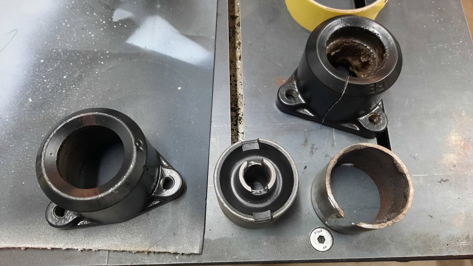 Gumy wahacza górnego dość ciężko wyjąć - nie ma do nich żadnego dostępu. Jedna obudowa mi niestety pękła podczas prób. W drugiej nie ryzykowałem (mimo, że na szczęście taka obudoa jest od ręki dostępna nowa) - rozciąłem resztkę tulei frezem.