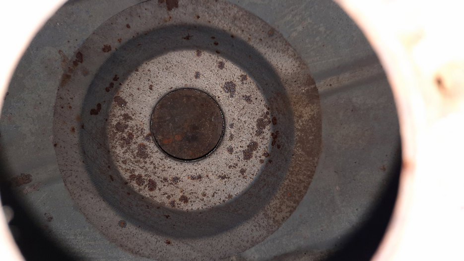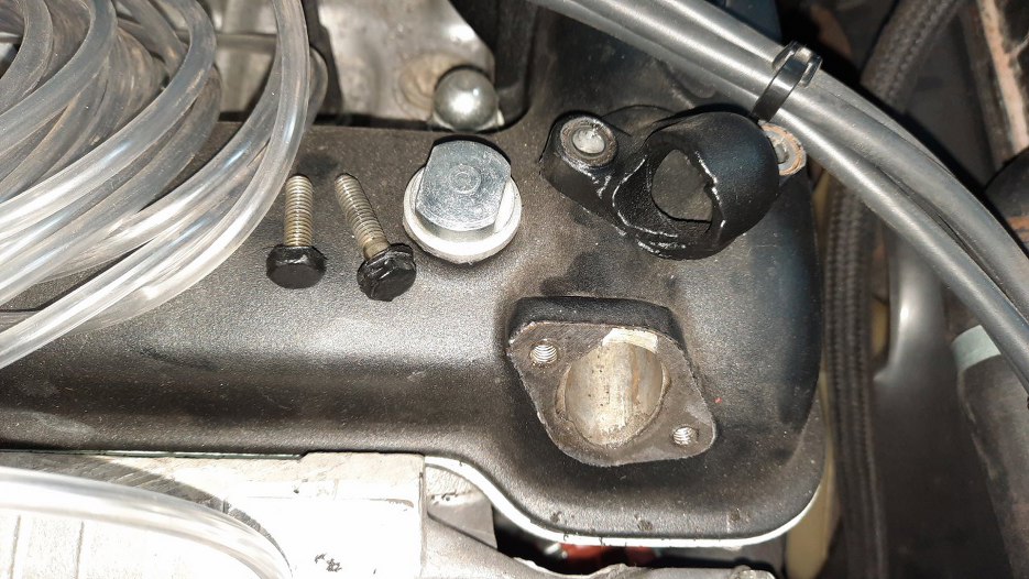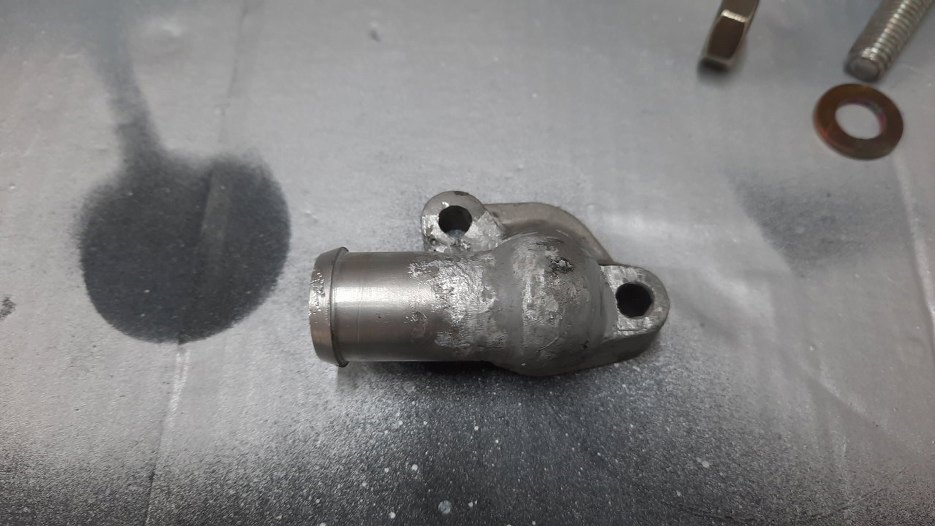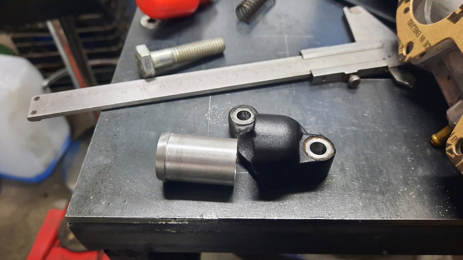 Króciec odmy na pokrywie zaworów był ułamany. Nie bardzo było skąd wziąć tą część, więc musiałem się przełamać i zacząć myśleć jak to uzupełnić :). Na początek to odkręciłem i wyczyściłem ze środka resztki piachu z piaskowania... :/