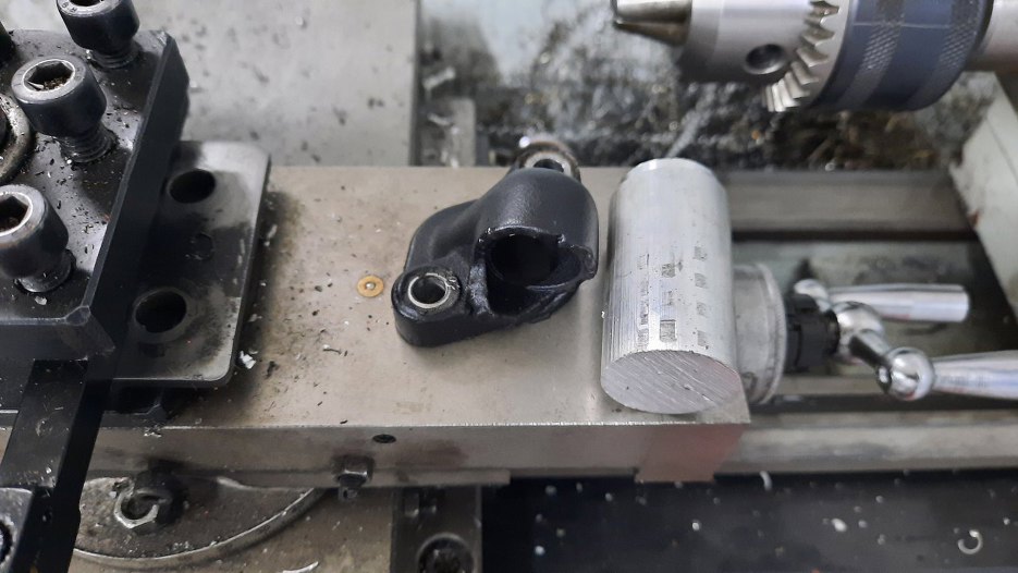 Potem zostało to zespawane. Niestety w odlewie było sporo wsiąkniętego oleju, więc spawy były koszmarne i porowate. Po ich oszlifowaniu uzupełniłem wszystkie porowatości epoksydem.