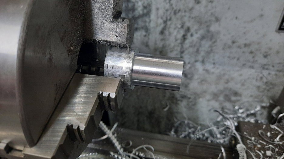 Najpierw wytoczyłem zewnętrzną średnicę, nieco większą niż średnica rurki gumowej, któa ma na to wejść.