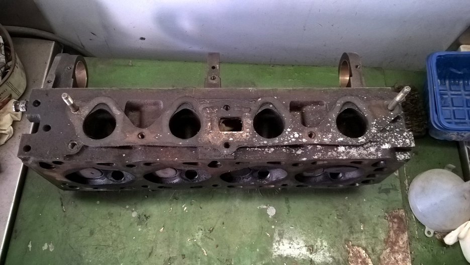Zgłosił się do mnie Darek z Fordem Transitem drugiej generacji z zabudową camperową, że jego silnik trochę jest słabawy i trzeba coś z tym zrobić. Po przerzucaniu się pomysłami i ich kosztami, stanęło na tym, że mam mu zrobić nową głowicę silnika. Modyfikacje miały objąć twarde gniazda zaworowe (Darek dużo jeździ na gazie, bo Transit ma aerodynamikę studenta ASP z teczką z rysunkami), nowy wałek rozrządu i dźwigienki. Niedużo. Twarde gniazda zostały pozyskane w najtańszy sposób, czyli nie przez wstawianie ich do głowicy, tylko zakup głowicy od nowszej wersji tego silnika, od Sierry z wtryskiem paliwa. Jest to nieco lepsza głowica również jeśli chpodzi o kształt kanałów dolotowych. Na zdjęciu poniżej rzecona głowica.