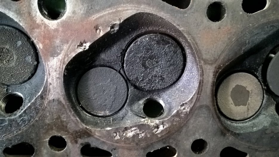 Tu widać to dokładniej. Są to śladydinozaurów odciśnięte miliony lat temu śruby, która kiedyś zwiedzała cylinder będąc na wycieczce szkolnej. Mi to nie przeszkadza, bo w celu uzyskania lekkiego wzmocnienia silnika (kosztem ryzyka uzyskania efektu spalania stukowego) głowica zostanie mocno splanowana (1 mm). Zwiększy to stopień sprężania.