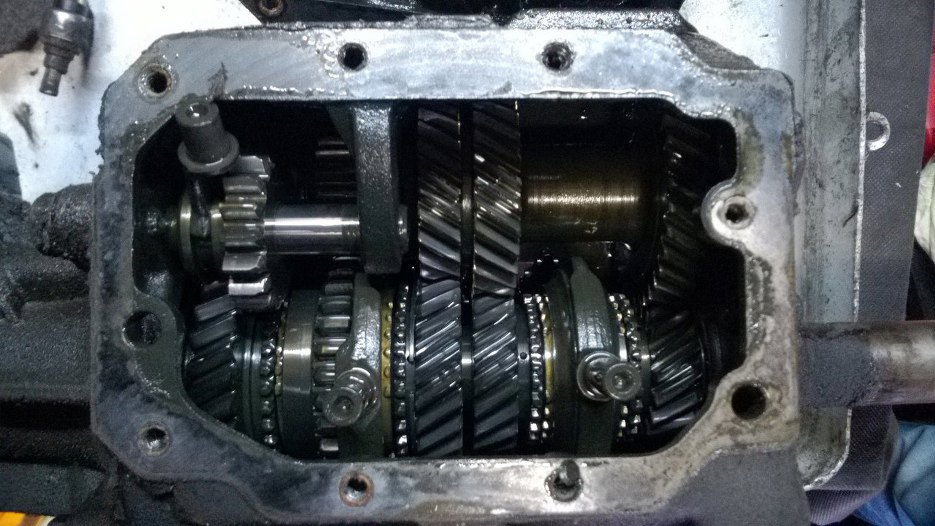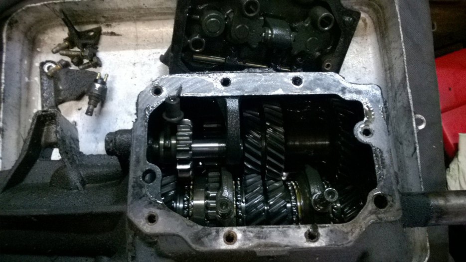 W środku nie ma szczególnie szlamu, po prostu nieco starego oleju. Skrzynia trochę podobno była głośna na trzecim biegu, ale podczas późniejszych oględzin nie stwierdziłem zużycia kół zębatych. Podejrzewam, że po prostu nie było w niej wystarczająco dużo oleju, bo za dużo go w skrzyni nie było.