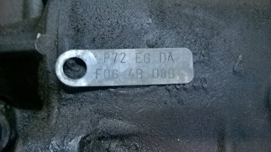Odkręciłem śruby trzymające ogon skrzyni biegów. Pod jedną z nich jest blaszka identyfikująca skrzynię.