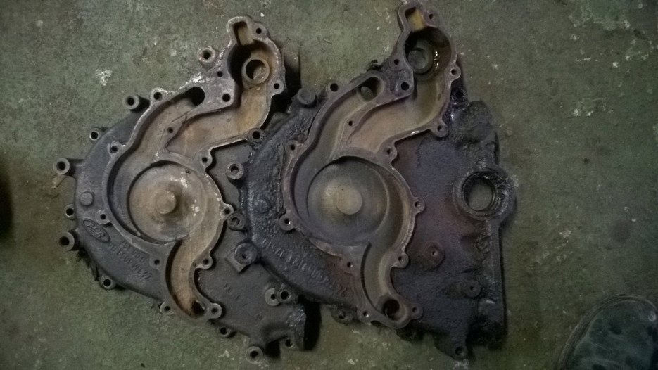 Przygotowania silnika czas zacząć. Na początek, z ciekawości porównanie pokryw rozrządu od dwóch silników 2.3 V6. Ta na wierzchu to z tego silnika, czyli '79. Pod spodem - '84. Widać drobne różnice. A ty weź to człowieku doczyść...