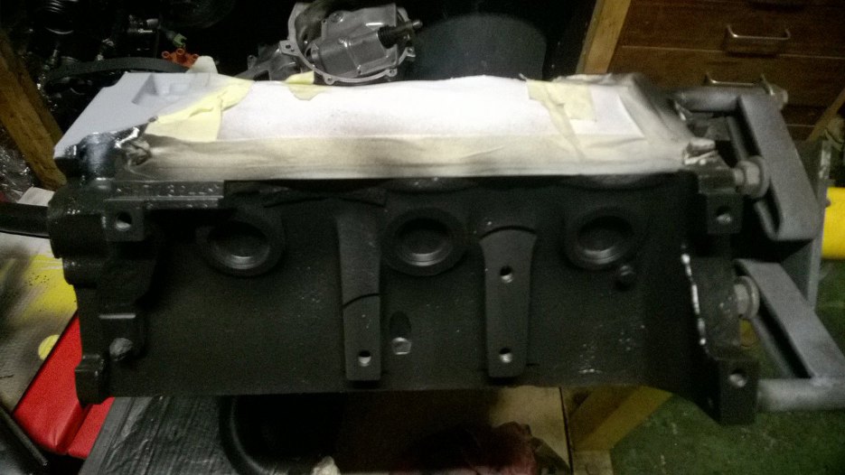 Następnie silnik został wyczyszczony do gołego metalu z rdzy i starej farby, odtłuszczony i oklejony do malowania.