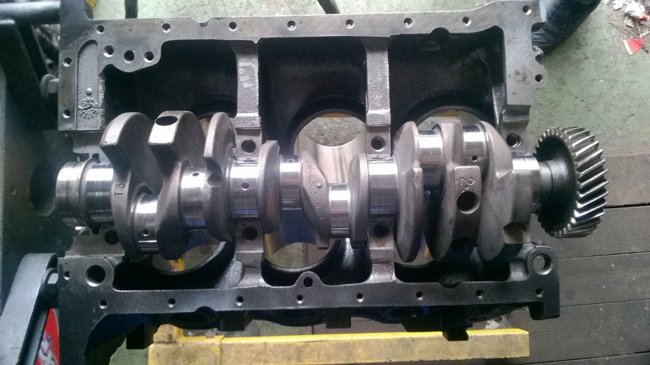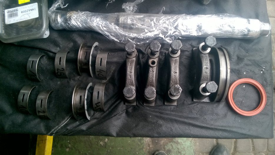 Po posmarowaniu panewek olejem włożony został wał korbowy.