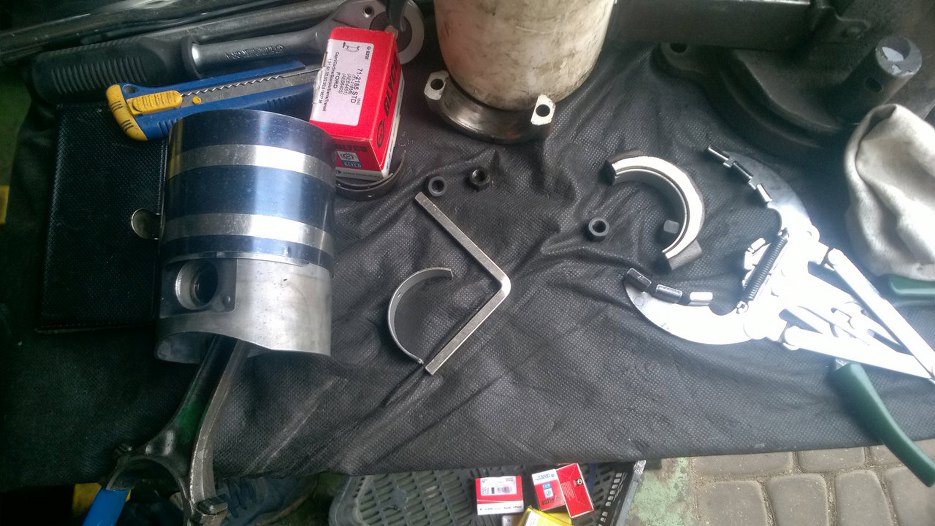 Przygotowane zostały panewki główne i stopy wału. Zazwyczaj nie zakładam używanych panewek, ale te były na tyle idealne, bez żadnej rysy, również wymiary były zgodne ze specyfikacją, że stwierdziłem, że naprawdę nie ma co ich zmieniać. Kolejna poszlaka na bardzo mały przebieg silnika.