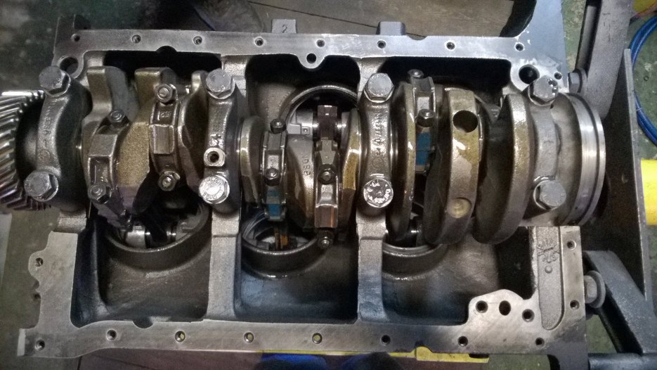 Teraz można było przykręcić ostatnią podporę wału korbowego.