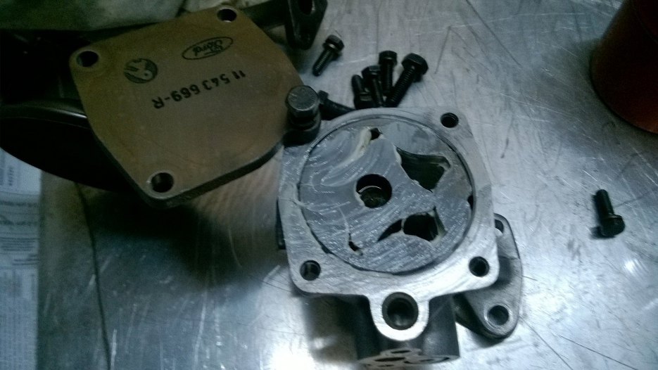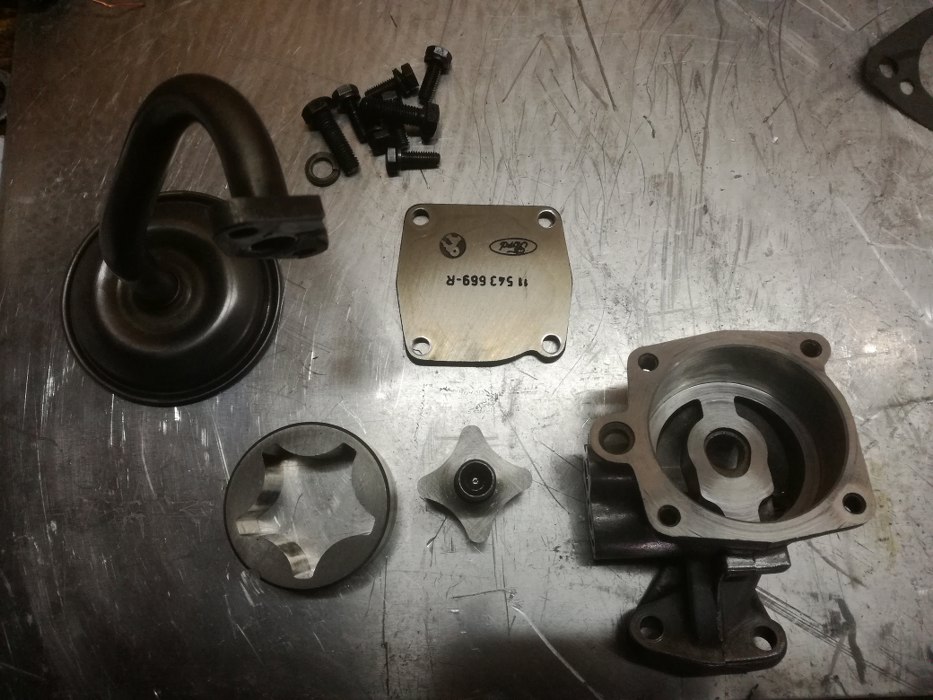 Oryginalna pompa oleju została rozkręcona i umyta. Co dziwne, okazała się w idealnym stanie i, inaczej niż zwykle, zostanie założona do silnika.