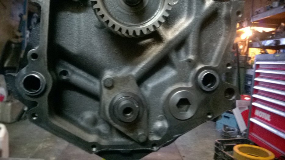 Z przodu silnika przykrecona została blaszka trzymająca wałek rozrządu. Warto tu pamiętać o kleju do gwintów...