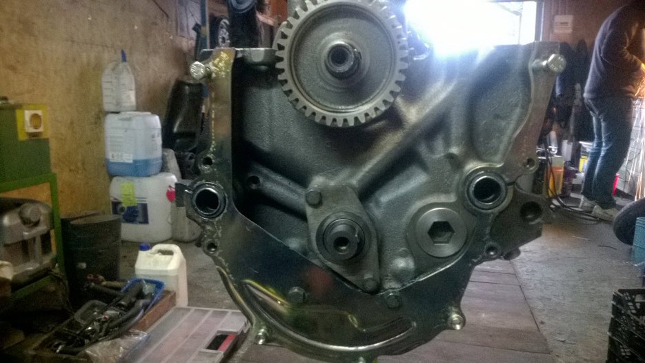 Pompę oleju posmarowałem w środku smarem montażowym, żeby łatwiej mogła zassać olej przy pierwszych obrotach.