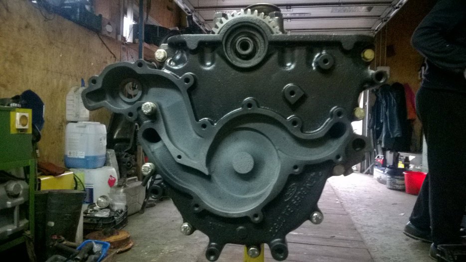 Po przykręceniu dużego koła rozrządu można zamknąć przód silnika pokrwą rozrządu. Znów wszystko przykręcone z odpowiednim momentem.