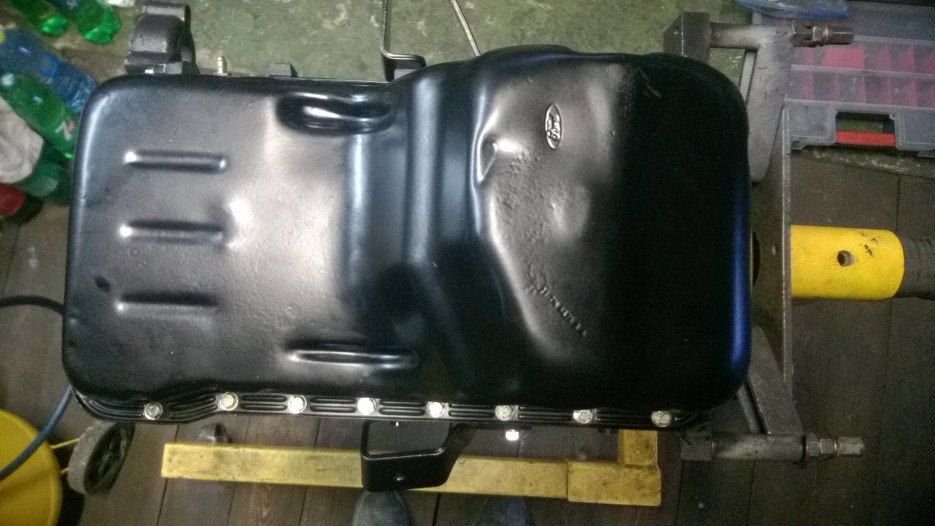 Miska olejowa została porządnie wyczyszczona w środku z pozostałości piasku z piaskowania. Następnie została przykręcona. Moment dokręcania jest bardzo mały, 6Nm, ale warto przynajmniej ze 4 razy dookoło podokręcać nim śruby - za każdym razem nieco dalej się dokręcają w miarę układania się uszczelek.