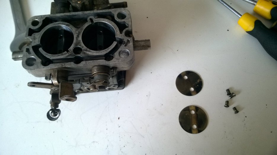 Odkręciłem też plasterek z przepustnicami od korpusu gaźnika.