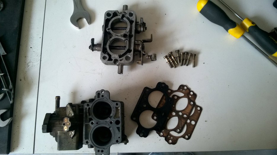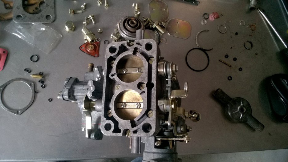 Włożone gardziele w korpus gaźnika, nowa uszczelka między korpus a przepustnice.