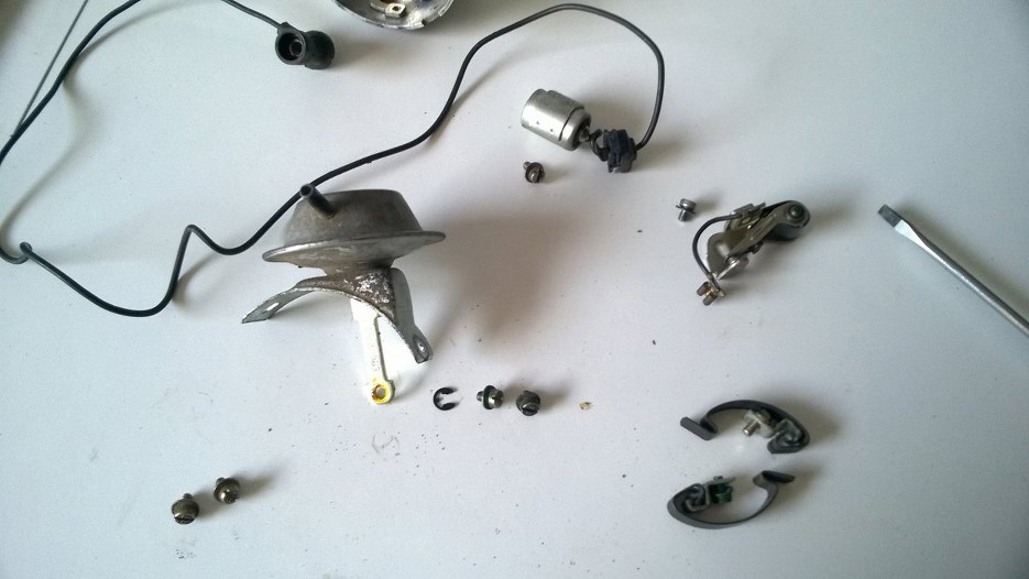 Następnie przykręciłem kondensator i resztę rzeczy, wyregulowałem od razy przerwę na przerywaczu.