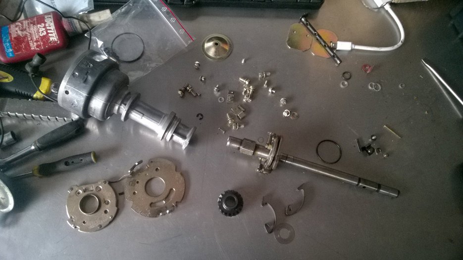 Złożyłem płytki zmiany kąta wyprzedzenia zapłonu. Ważne, żeby były czyste i lekko nasmarowane olejem, żeby obracały się zględem siebie swobodnie.