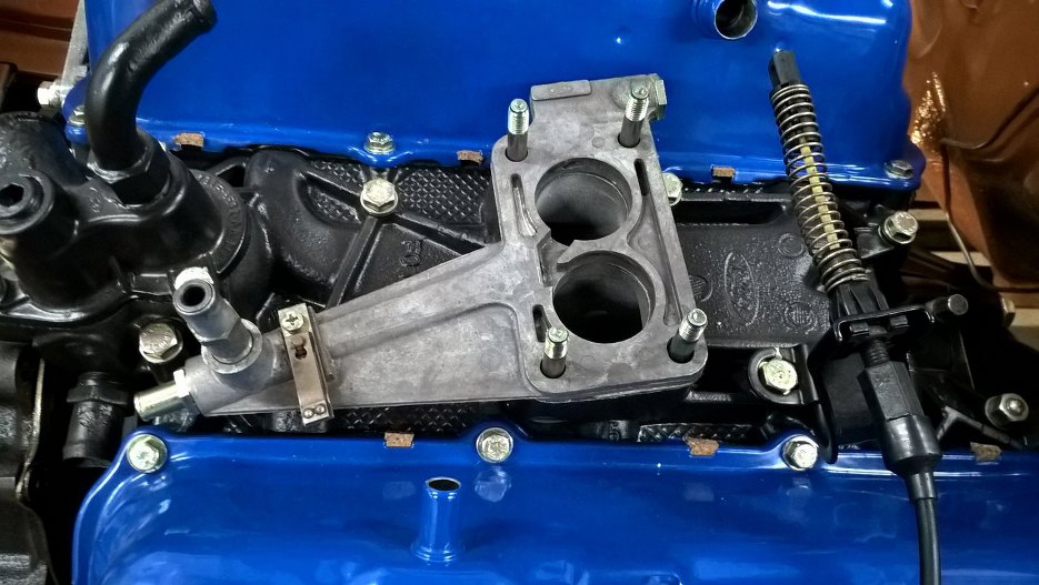 Założyłem też linkę sprzęgła, i gazu; przygotowałem podstawkę pod gaźnik. Widać też, że pokrywy zaworów są już na miejscu. Trochę to trwało, bo były w reklamacji po malowaniu proszkowym.