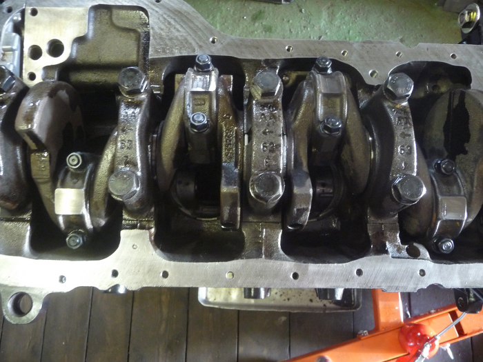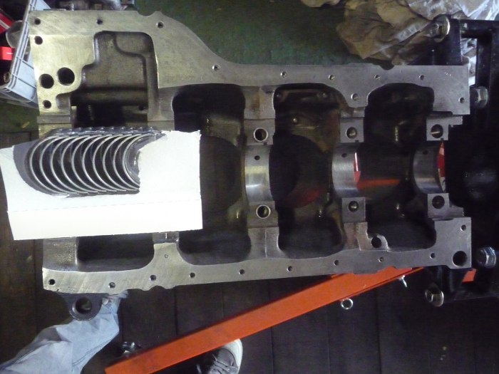 Po sprawdzeniu wymiarów wewnętrznych panewek w porównaniu do wymiarów wału korbowego mogłem już włożyć wał na miejsce i dokręcić stopy wału z odpowiednim momentem. Ważne, żeby sprawdzić, czy wał obraca się płynnie, bez oporów. Przy zakładaniu ostatniej stopy wału zakładam również simmering tylny, jest dużo łatwiej niż po jej dokręceniu.