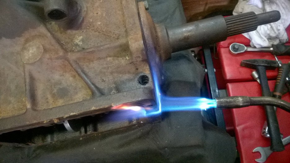 Ten sam bolec uniemożliwia wyjęcie wybieraka, zanim się owego właśnie bolca nie wyjmie. A on sam ma inny pogląd na moją chęć wyjęcia go ze skrzyni... Dlatego używam środków przymusu bezpośredniegi, czyli palnika i, za przeproszeniem, środka penetrującego.