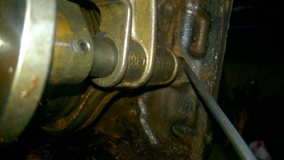 W końcu udaje mi się rozruszać zardzewiały w skrzyni bolec i końcówkę pręta wybieraków, ale nadal nie mogę nic wyjąć. Udało mi się wcisnąć tam śrubokręt i wypchnąć bolec na tyle, że wreszcie mogłem wyjąć mechanizmy wybierania biegów.