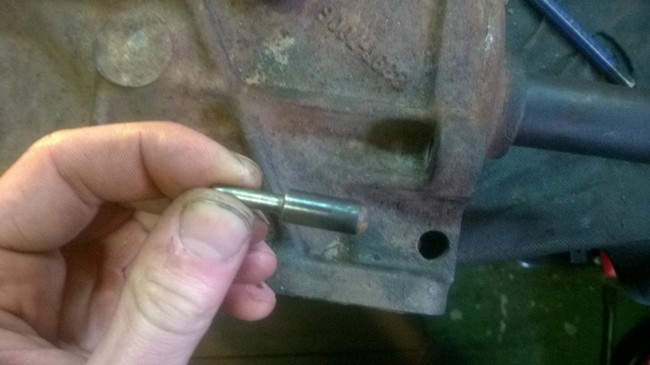 Rozkładam. najpierw wybijam pin z końca wybieraka biegów.