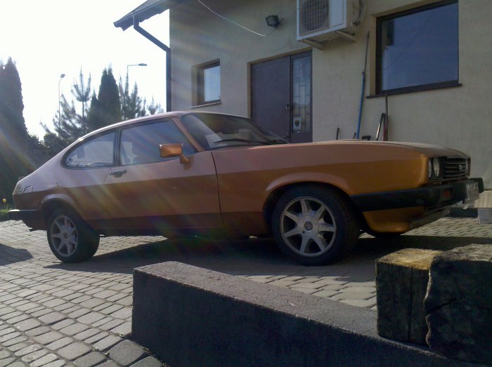 Capri przyjechało w zasadzie z trzema rzeczami. Pierwsza - coś z gaźnikiem - może źle ustawiony, może do regeneracji? Druga - alternator nie ładuje. Trzecia - wymiana szpilek kół w przednich piastach, żeby założyć 15mm dystanse (auto ma dorobione dodatkowe drążki reakcyjne i koło nieco o nie ociera przy mocnym skręcaniu.