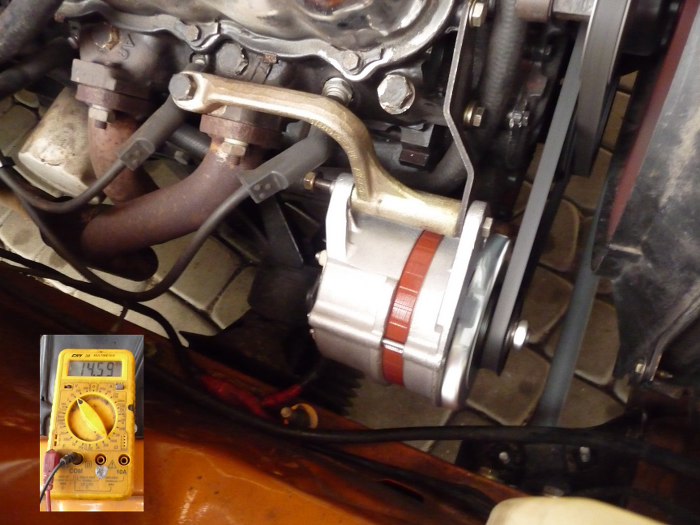 Na początek się wziąłem za alternator. Zmierzyłem napięcie ładowania - 12.6V. Na akumulatorze i alternatorze takie samo, spadek napięcia na przewodzie - 0.01V, czyli w granicy błędu pomiarowego. Po wymianie regulatora napięcia - to samo. Na moje oko coś uszkodzonego w uzwojeniu? Tak czy inaczej, Bartek dla przyśpieszenia diagnozy zabrał ode mnie alternator i wymienił na 100% sprawny po regeneracji w firmie Bendix. Pomogło, ładowanie się pojawiło, nawet na wolnych obrotach napięcie wynosi 14.59V.
