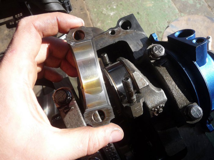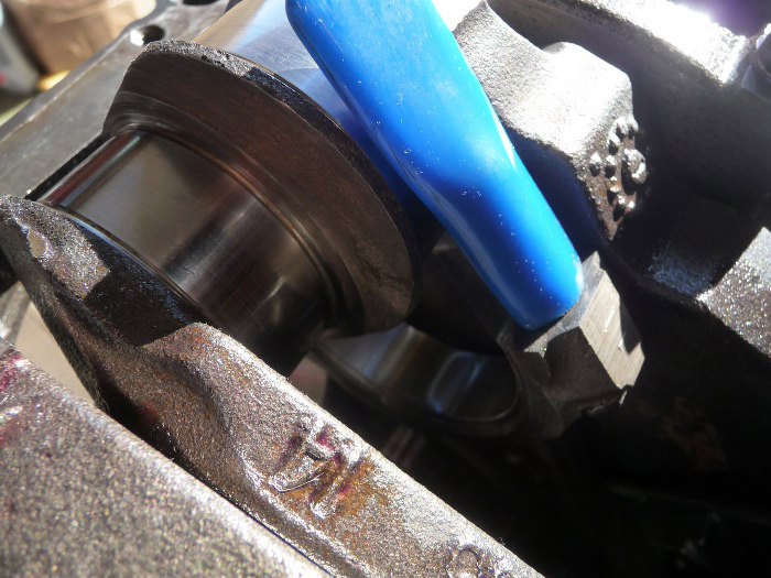 Śruby korbowodu zabezpieczyłem. Przed dociągnięciem korbowodu do wału kapię na panewkę olejem.