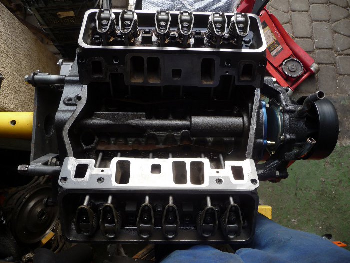 Obie głowice poskładane. Ustawiałem to tak, jak poprzednie silniki tego typu, czyli do skasowania luzu zaworowego, a następnie jeszcze 3/4 obrotu. Błąd. W Vortecu się nie reguluje zaworów. Dokręca się nakrętki od dźwigienek zaworowych i już. Szkoda, że zorientowałem się już po włożeniu silnika do auta - tam już nie tak łatwo się dostać do zaworów...