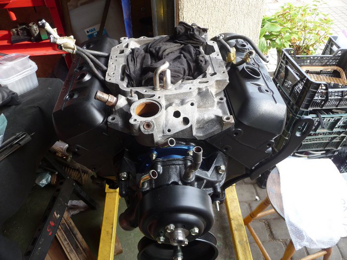 Póki co zakryłem górę silnika pokrywami i kolektorem dolotowym.