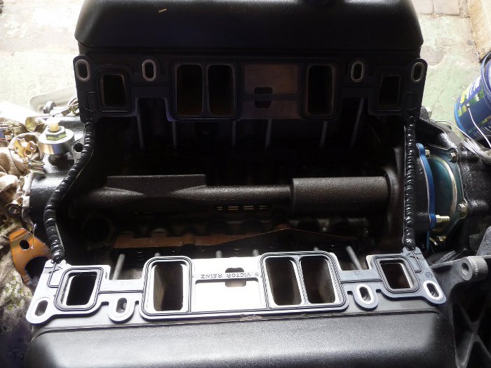 Pora na przykręcenie kolektora. Położyłem wymaganą ilość uszczelniacza (tak, tak, tak ma być, fabrycznie też tak było).