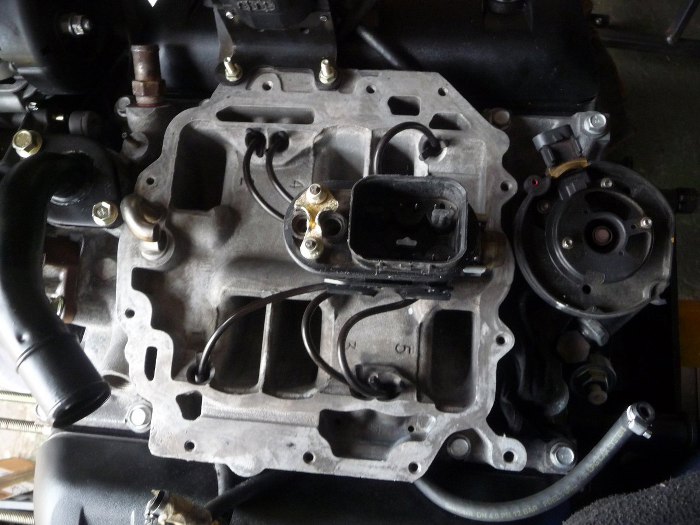 Kolektor założony. Również wtrysk paliwa i aparat zapłonowy są już na miejscu.