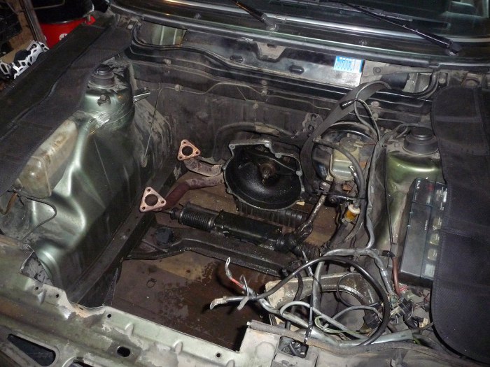 Dobra, do pracy - maska zdjęta, odkręcamy co się da dookoła silnika.