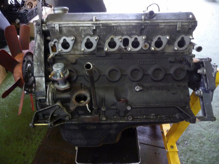 Poprzednio było robione coś z wałem, nowe panewki, jeśli dobrze pamiętam. Do tego rozmaite kombinacje z grodziami w misce olejowej, żeby olej nie uciekał spod pompy oleju na zakrętach. Znam to i z miski silnika z Kadetta Rafała, który u mnie gościł jakiś czas temu. Tutaj podobnie - grodzie nie okazały się bardzo skuteczne. Tym razem, oprócz przejrzenia silnika, Jędrek chce zmienić miskę olejową na taką z nowszego modelu BMW, która podobno rozwiązuje problem uciekającego spod pompy oleju na zakrętach.