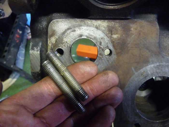 Po powrocie bloku ze szlifierni zacząłem go przygotowywać do mycia i malowania. Wykręciłem szpilki pompy paliwa.